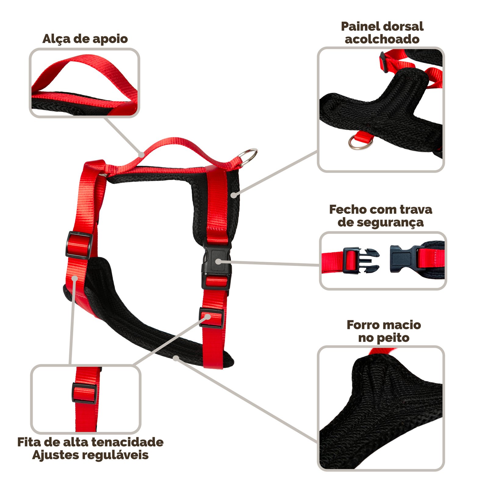 Desenvolvido para cães e pais de pet que buscam mais controle sem abrir mão do conforto, o Ventura Dorsal combina fitas de poliéster de alta tenacidade, painel acolchoado no peito e no dorso e ajuste regulável na base do pescoço e no tórax para acompanhar melhor o corpo do pet.