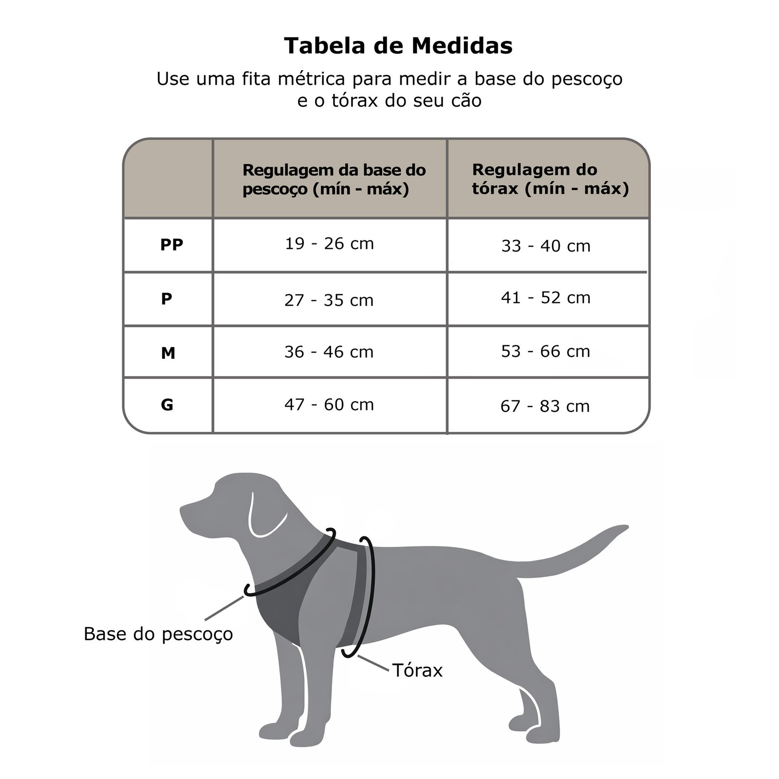 - Ajuste regulável na base do pescoço e no tórax